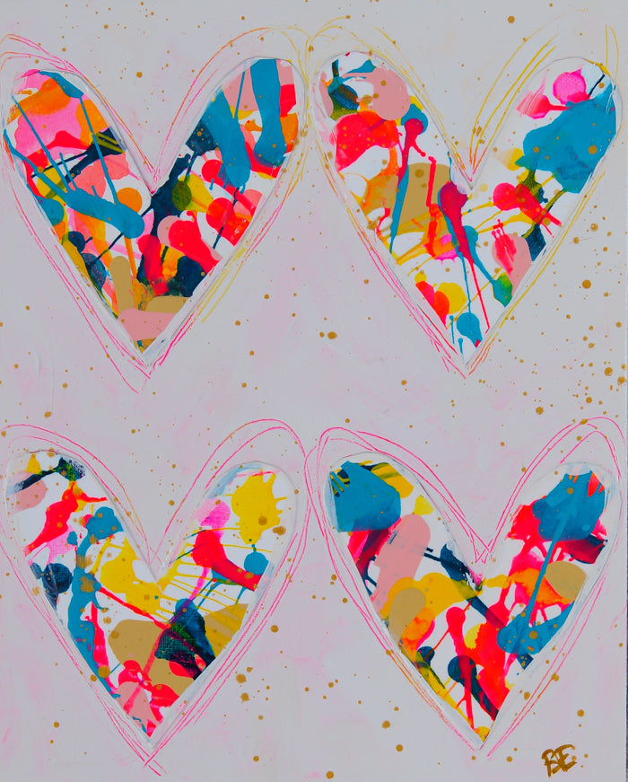 Paper. Acrylic. Acrylic Ink. Hearts. Spin Art.
